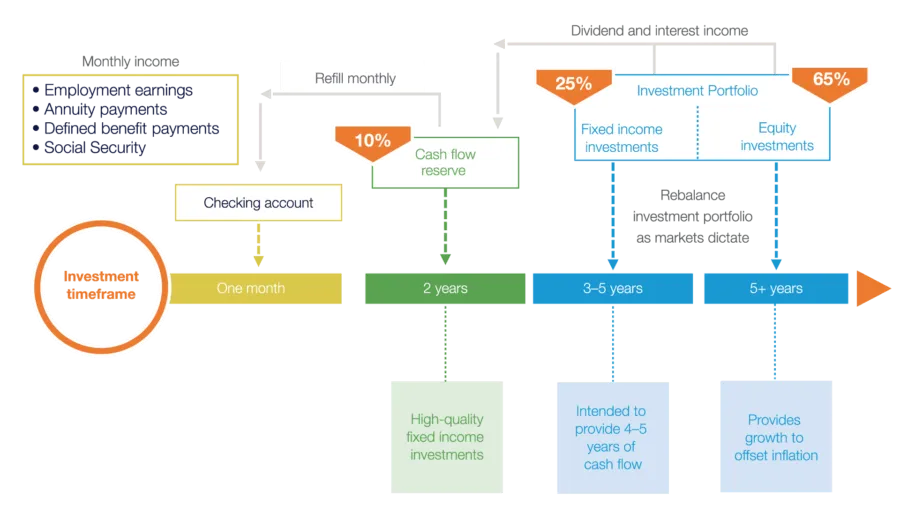 A cash flow reserve ladder may help provide retirement income while avoiding ill-timed asset sales.