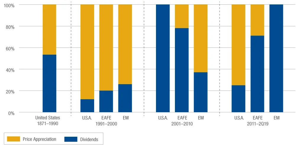 Contribution to Total Market Return from Dividends and Price Appreciation (as of 6/30/2019)