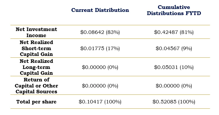 The Trust’s fiscal year (10/01/2025 through 09/30/2026) cumulative distributions are shown below: